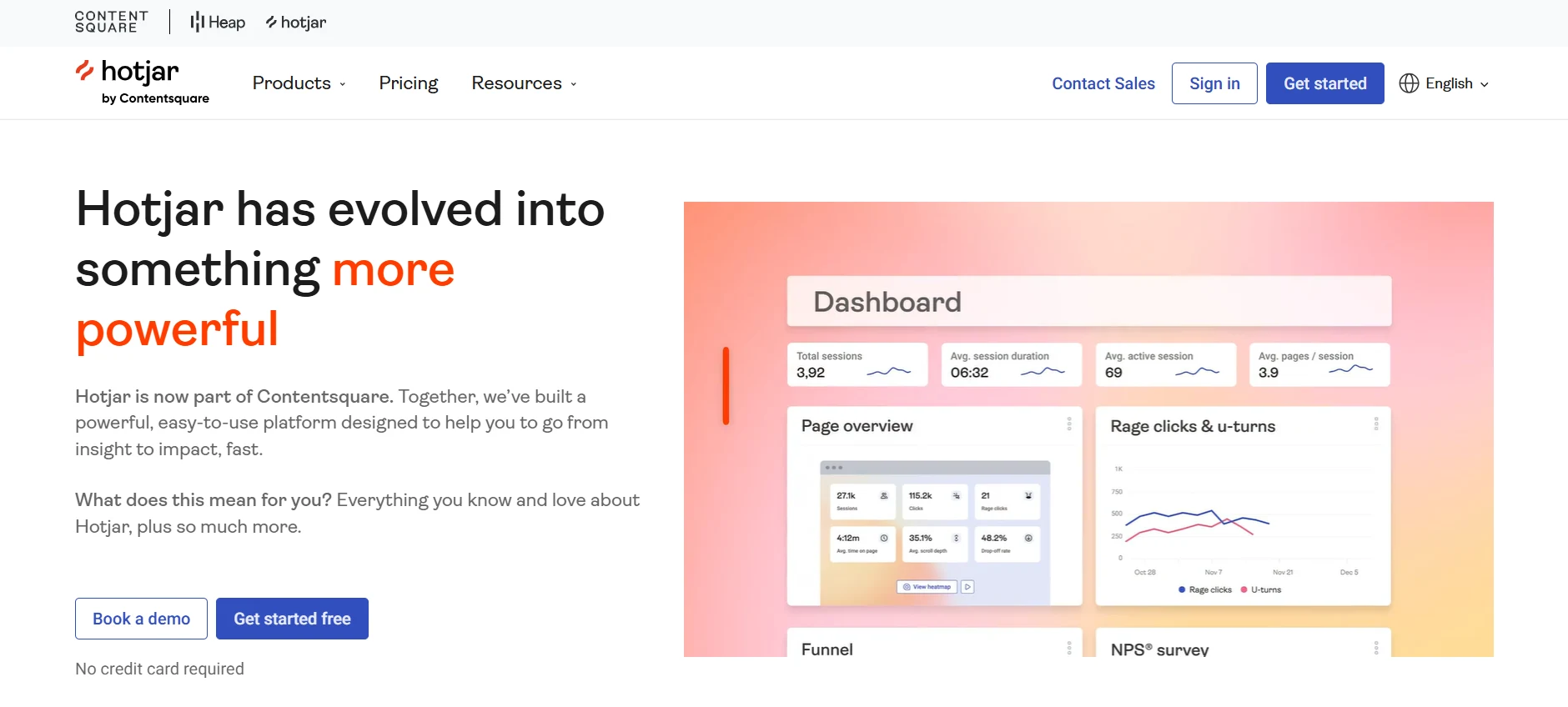 Hotjar adds qualitative insights, heatmaps, session recordings, and surveys to your quantitative data stack.