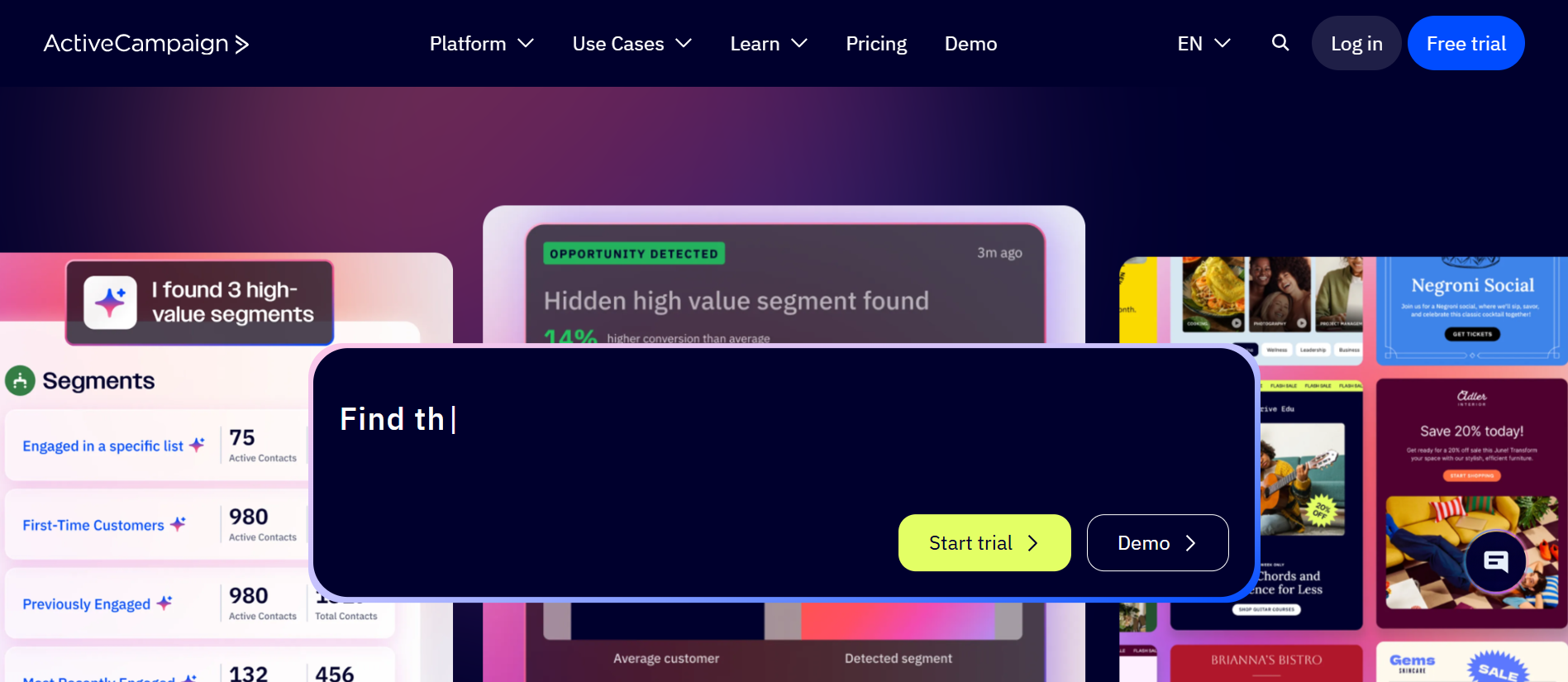 ActiveCampaign offers a strong blend of CRM, automation, and multi-channel messaging. It lets you send emails, track site visits, score leads, and automate follow-ups based on behaviour.Key Features: